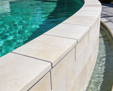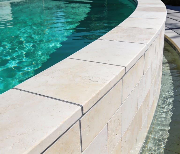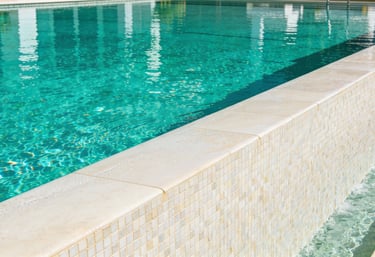 Pool tiling and retiling in Perth, including waterline tiles and bullnose coping. Premium porcelain, glass and mosaic options installed with clean lines and watertight detailing.