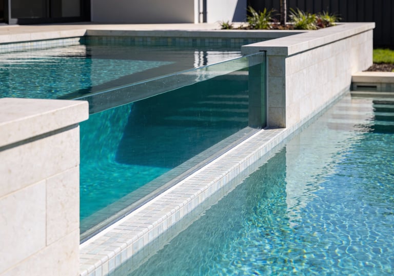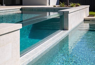 Clear glass and acrylic pool features for Perth pools — including pool windows, viewing panels and sleek clear-edge designs. We deliver high-end detailing, watertight sealing and premium finishes as part of luxury pool renovations.